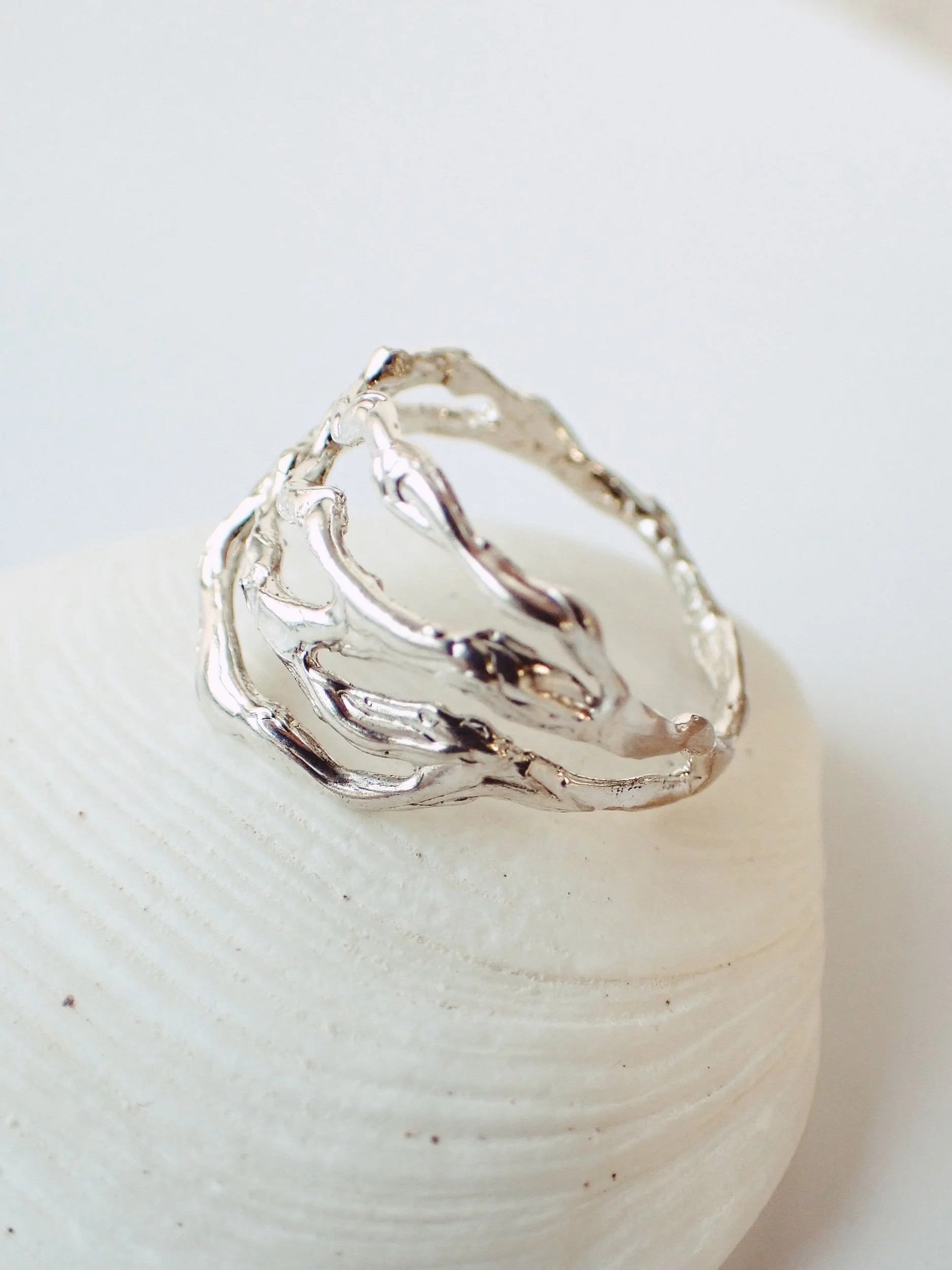 Lose yourself in the ebb and flow of the sea & celebrate the cycles of life. This ring is handmade in solid sterling silver, each one is slightly unique.